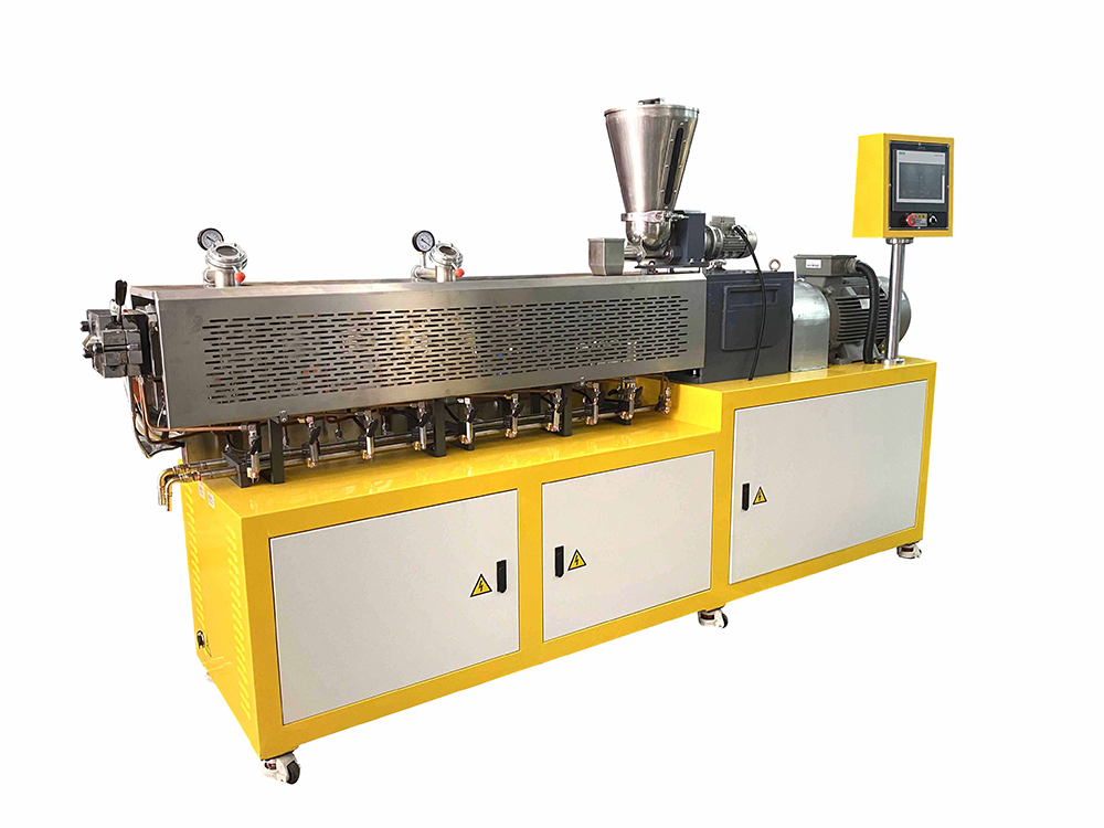 簡介:螺桿的連續(xù)轉(zhuǎn)動反復強迫物料轉(zhuǎn)向,有助于物料的均勻混合、塑化。在雙螺桿擠出機的加熱、混合,剪切、塑化、壓實排氣作用下,物料塑化成均勻的熔體,并在雙螺桿的擠壓下,通過機頭擠出圓形的條狀料,經(jīng)冷卻水槽水冷后,再經(jīng)切粒機切粒,得到塑膠粒料。本實驗采用水冷拉條冷切法。